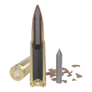 Unique high-performance tungsten carbide core round for maximum penetrating power. Reliable in extreme environmental conditions.